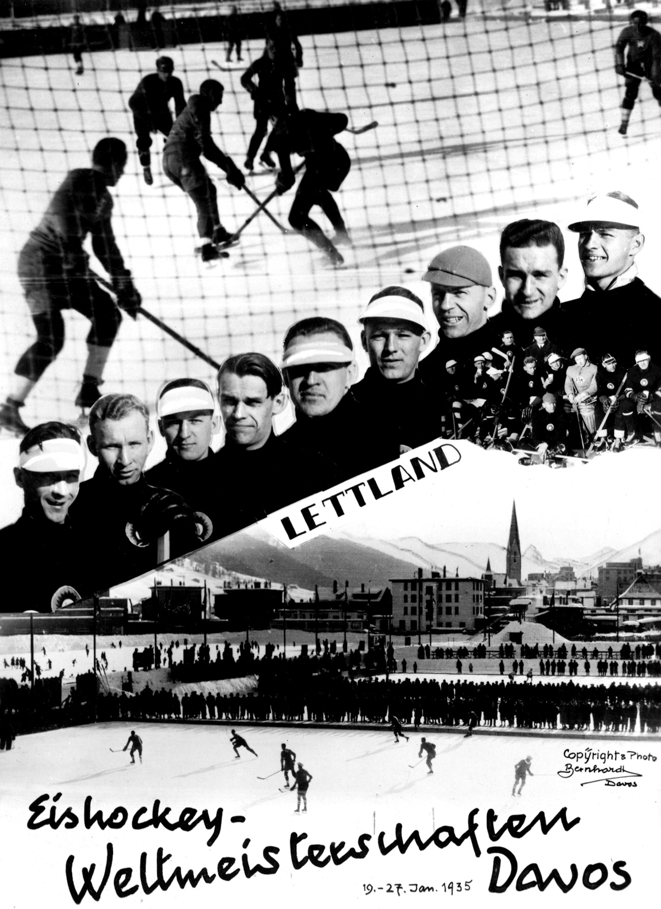 No 1935. gada 19. – 27. janvārim Davosā (Šveice) notika 9. pasaules čempionāts hokejā, kurā piedalījās arī Latvijas valstsvienība, kas ieņēma 13. vietu (starp 14 komandām). Šis turnīrs vienlaicīgi bija arī Eiropas čempionāts un tajā Latvijas valstsvienība ieņēma 12. vietu (starp 13 komandām). Priekšsacīkšu grupu turnīrā 20. janvārī tika zaudēts Kanādai (0:14) un Lielbritānijai (1:5), bet pēc tam gandarījuma turnīrā