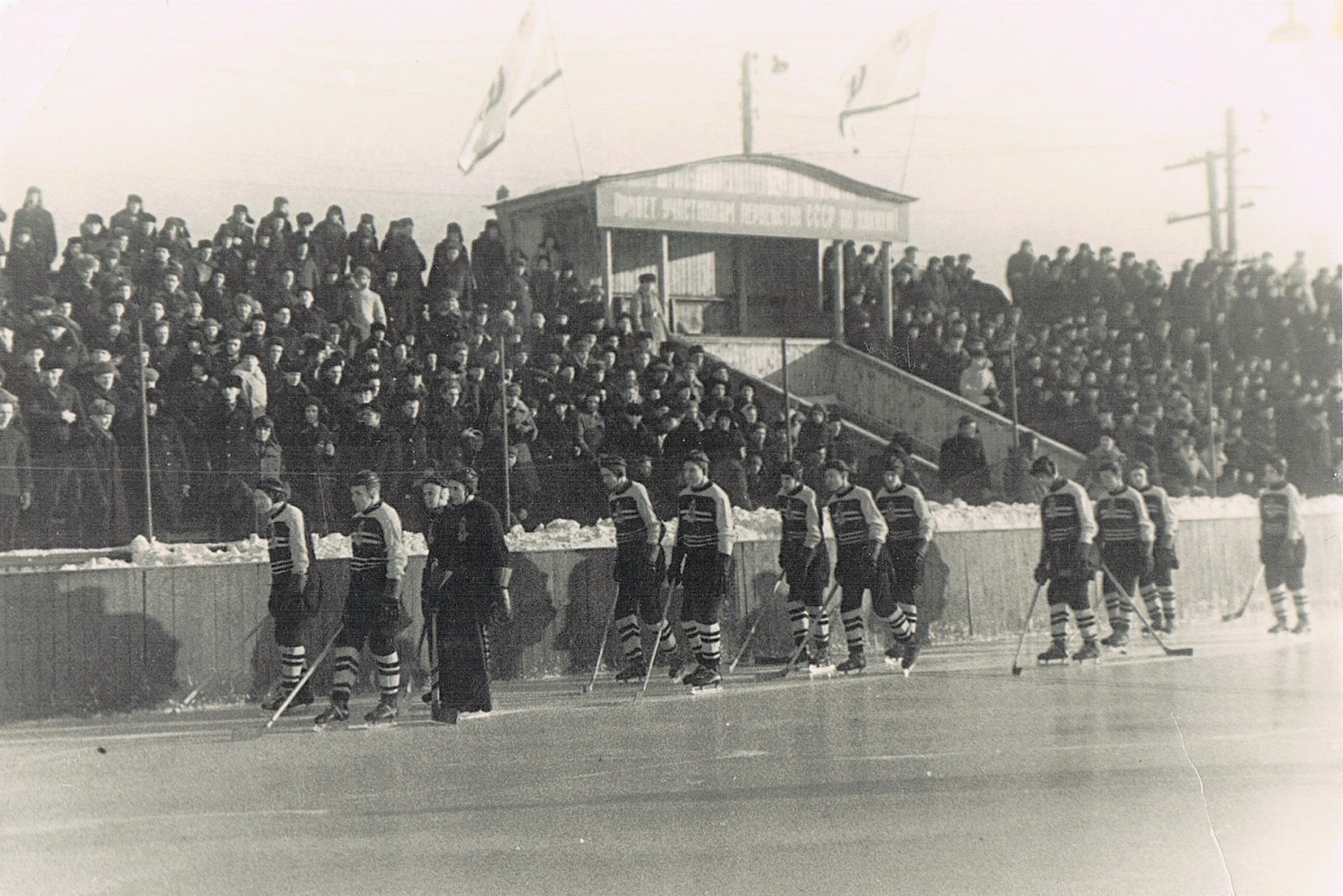 1951. gada janvārī Daugavas stadionā Rīgā tika atvērts pirmais stacionārais hokeja laukums (izmērs 63x33 m), kas bija izrakts 1,7 m dziļi zemē, un tam apkārt bija tribīnes 4 500 skatītājiem.