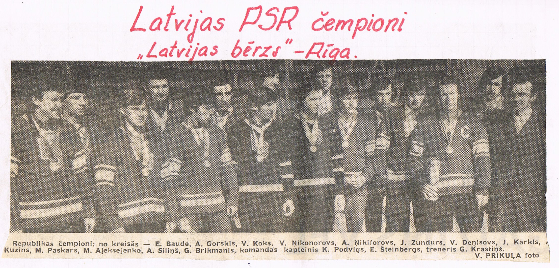 Sastāvs: vārtsargi V. Samoilovs, M. Vasiļonoks; aizsargi L. Beresņevs, V. Durdins, A. Freimanis, K. Grigorjevs, M. Grundmanis, U. Katlaps, V. Kuzņecovs, A. Maticins, A. Taboļins, S. Zinovjevs; uzbrucēji M. Abalmasovs, A. Beļavskis, I. Brezgins, V. Dudins, A. Froļikovs, S. Gapejenko, A. Kerčs, V. Lubkins, I. Pavlovs, J. Semerjaks, S. Skosirevs, J. Šipicins, M. Šostaks, O. Znaroks.