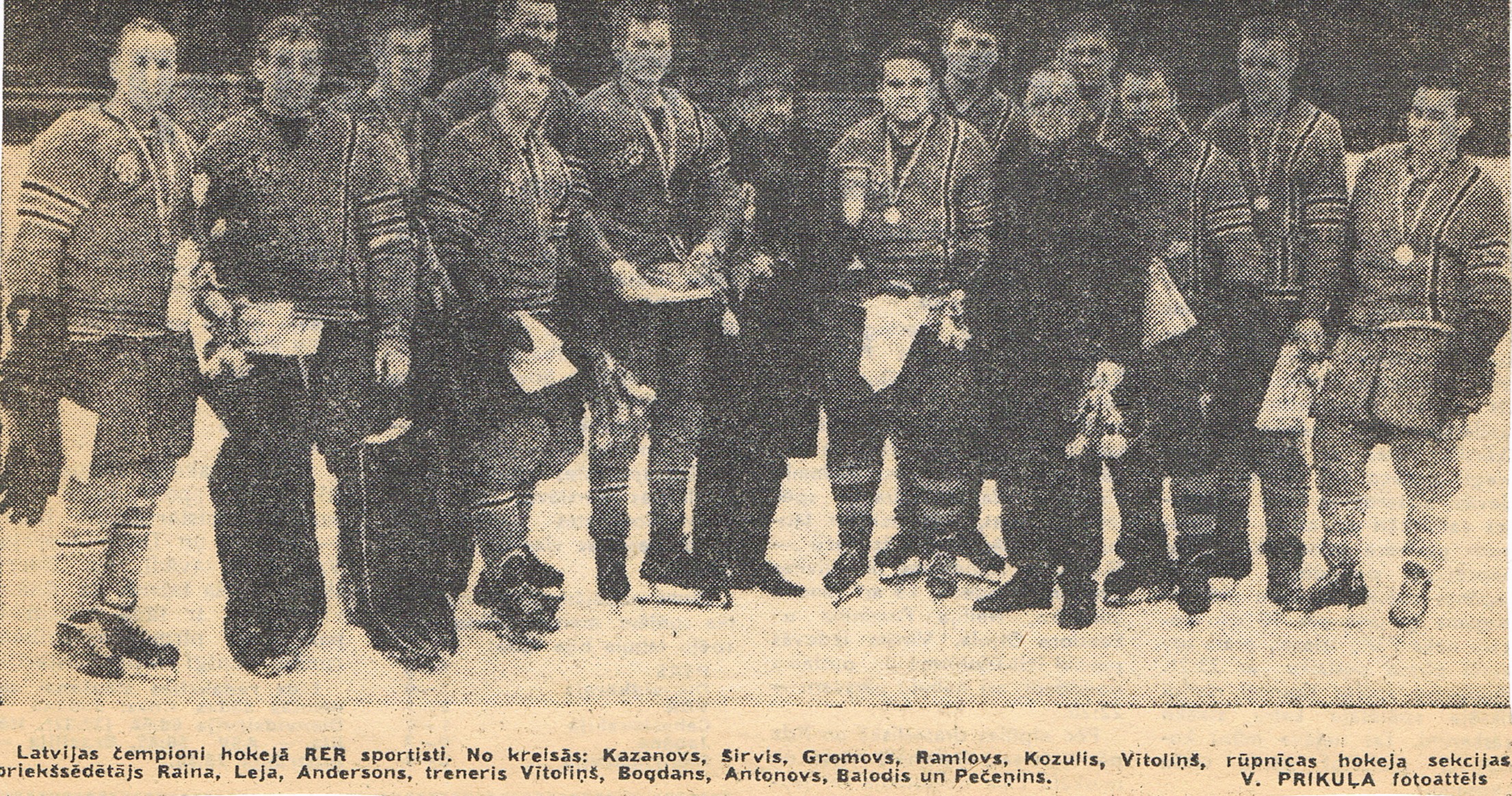 Sastāvs: vārtsargi E. Ozoliņš, I. Spundiņš; aizsargi N. Ķesteris, A. Niklass, H. Vītoliņš I, O. Zariņš; uzbrucēji E. Bauris (17 vārti), R. Buļzgis, M. Firsovs, A. Galkins, E. Klāvs, B. Polis, K. Ronis, G. Straupe, V. Šūlmanis (15 vārti).