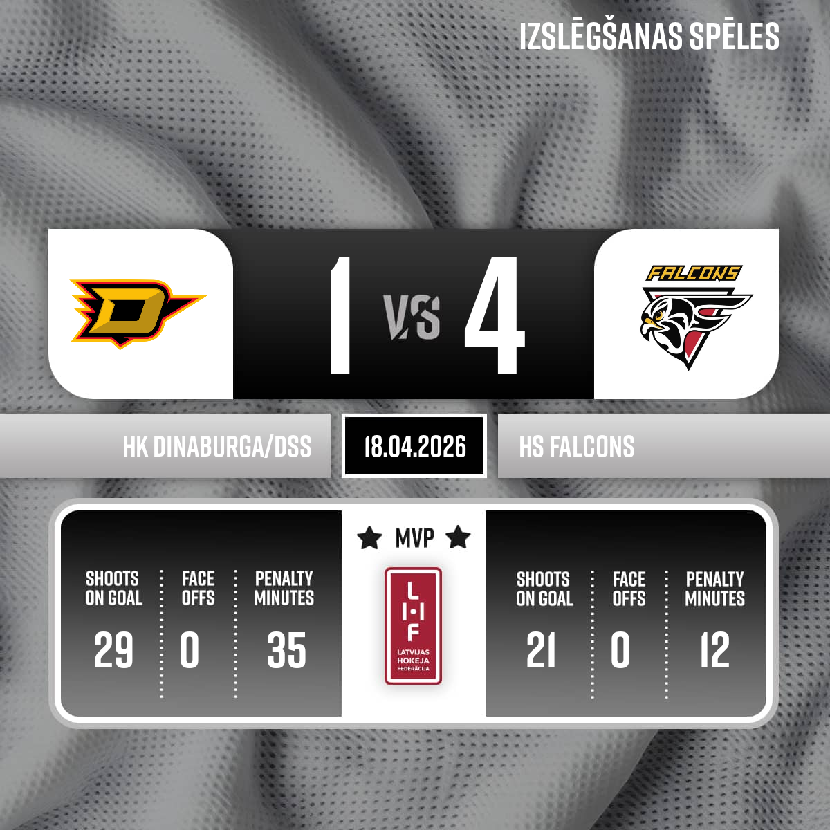 - Penalty bench officials:Aleksandrs PAVLOVSKIS, Vladimirs FOMINS
