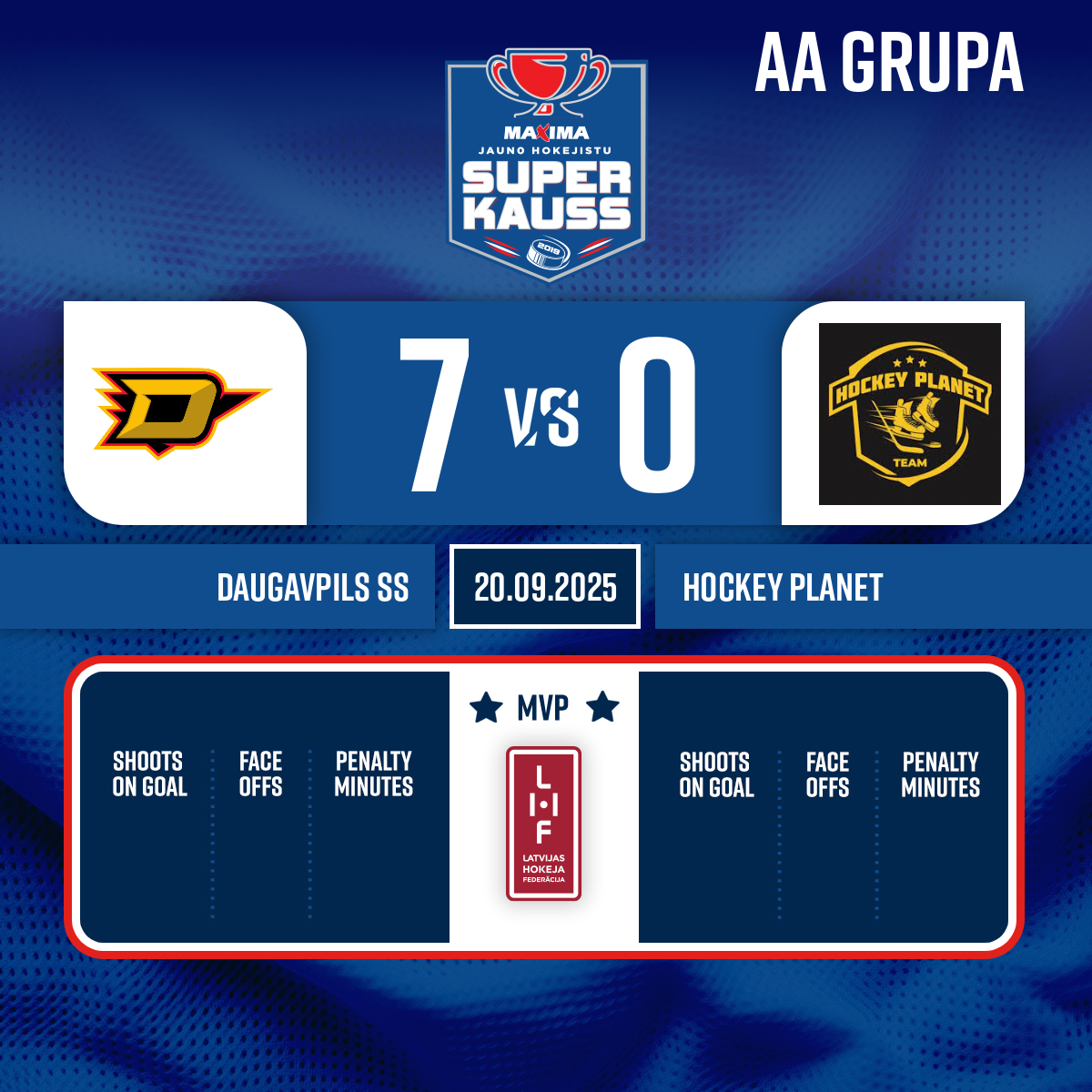 - 15:00P1Goalkeeper in#33 Natans OVČIŅŅIKOVS