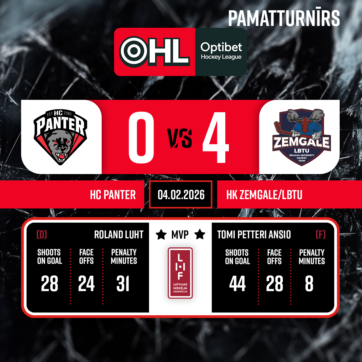 Goalkeeper out#31 Aksels OZOLS - 60:00P3
