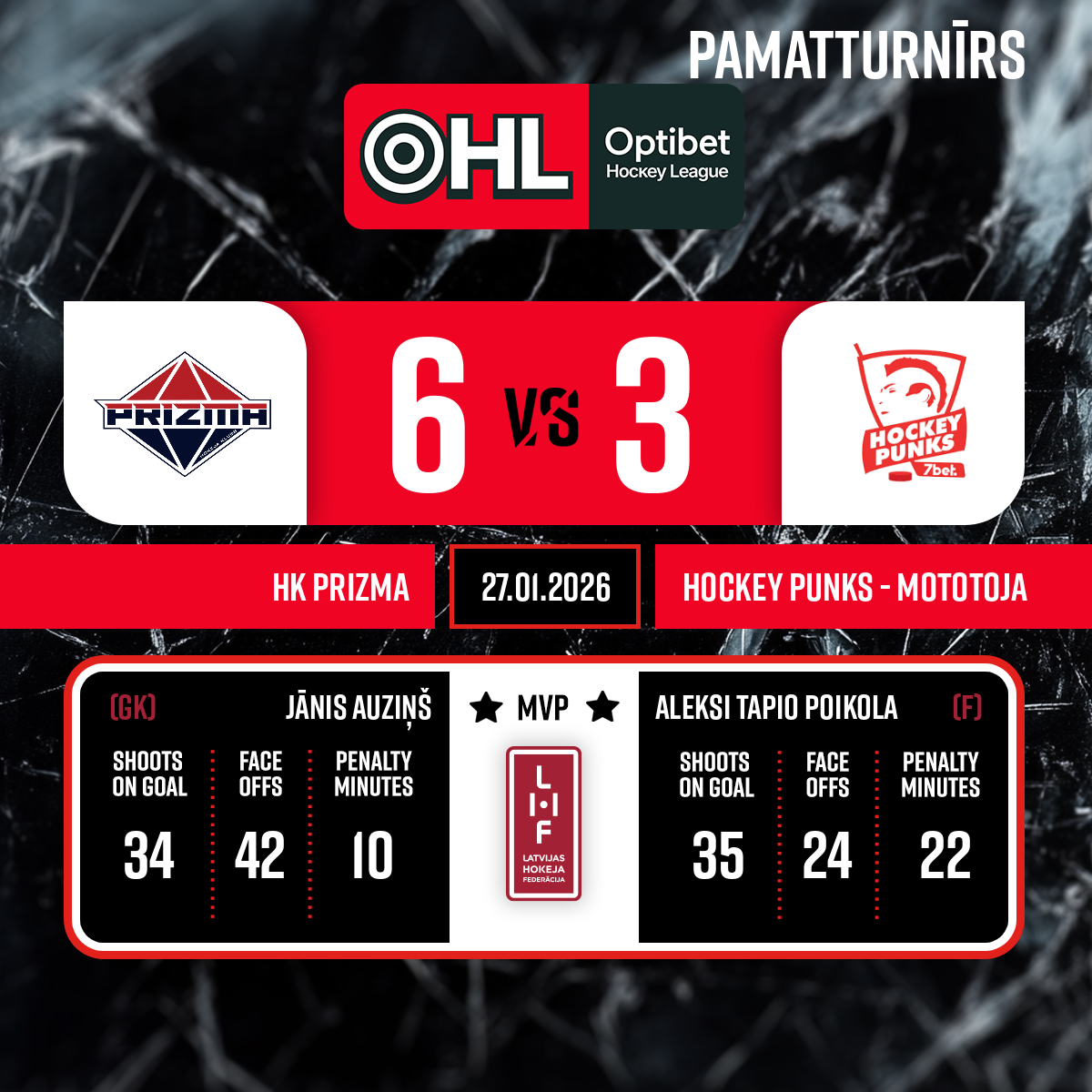 - Penalty bench officials:Markuss GALLE, Viktors HIRŠSONS