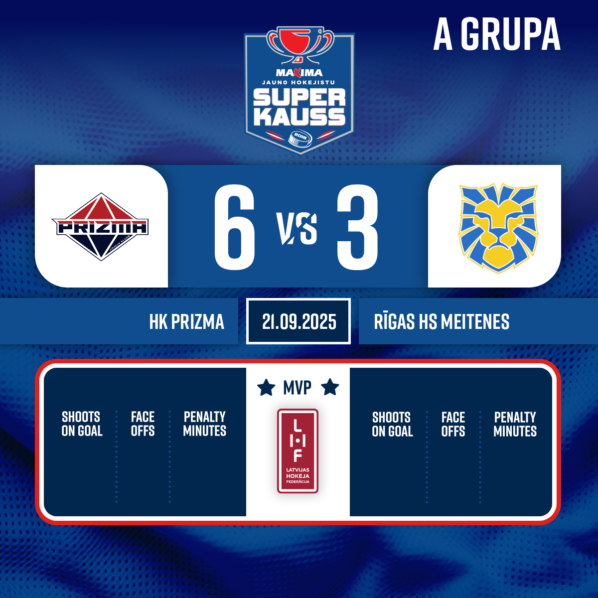 - 13:54P1Goal#19 Ernests ANCVEIRSAssist: #21 Adrians JEFREMENKO