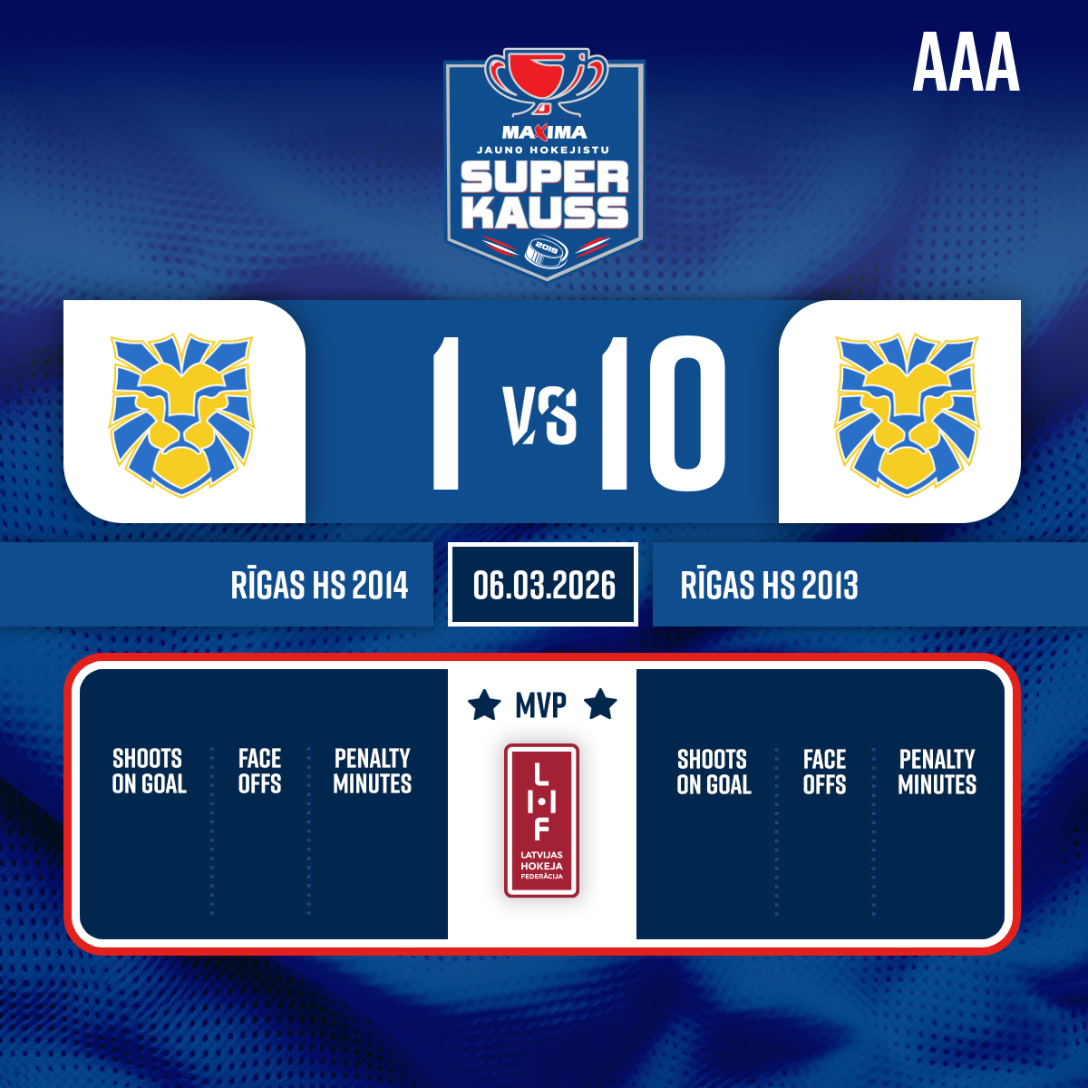 Goal#20 Kārlis ŠIRJAJEVSAssists: #14 Alens STRĒLNIEKS, #28 Iļja JEROFEJEVS - 39:12P3