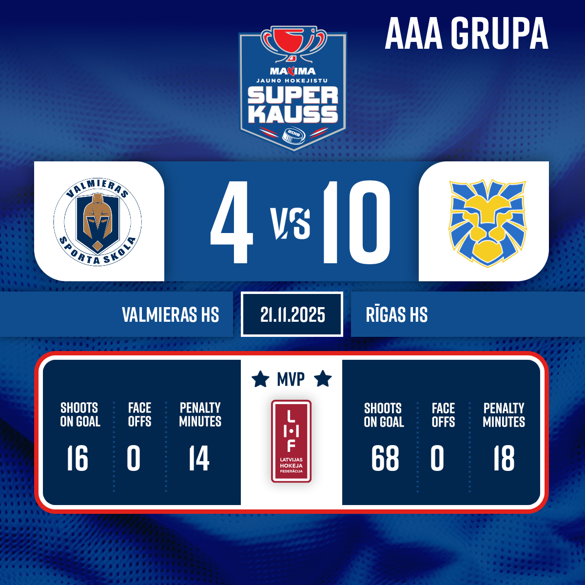 #12 Ralfs Rūdolfs KASPARINSKISAssists: #55 Andrejs JEGOROVS#82 Ričards TURNIS4:948:10