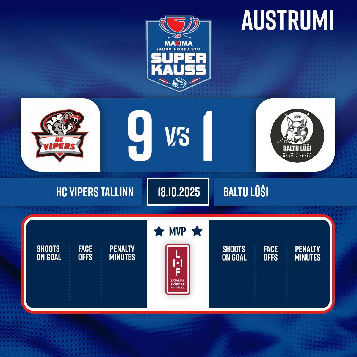 Goal#9 Kārlis Jānis TURĻUKSAssists: #29 Reinholds ČEBOTARJOVS, #4 Ričards MALAHOVS