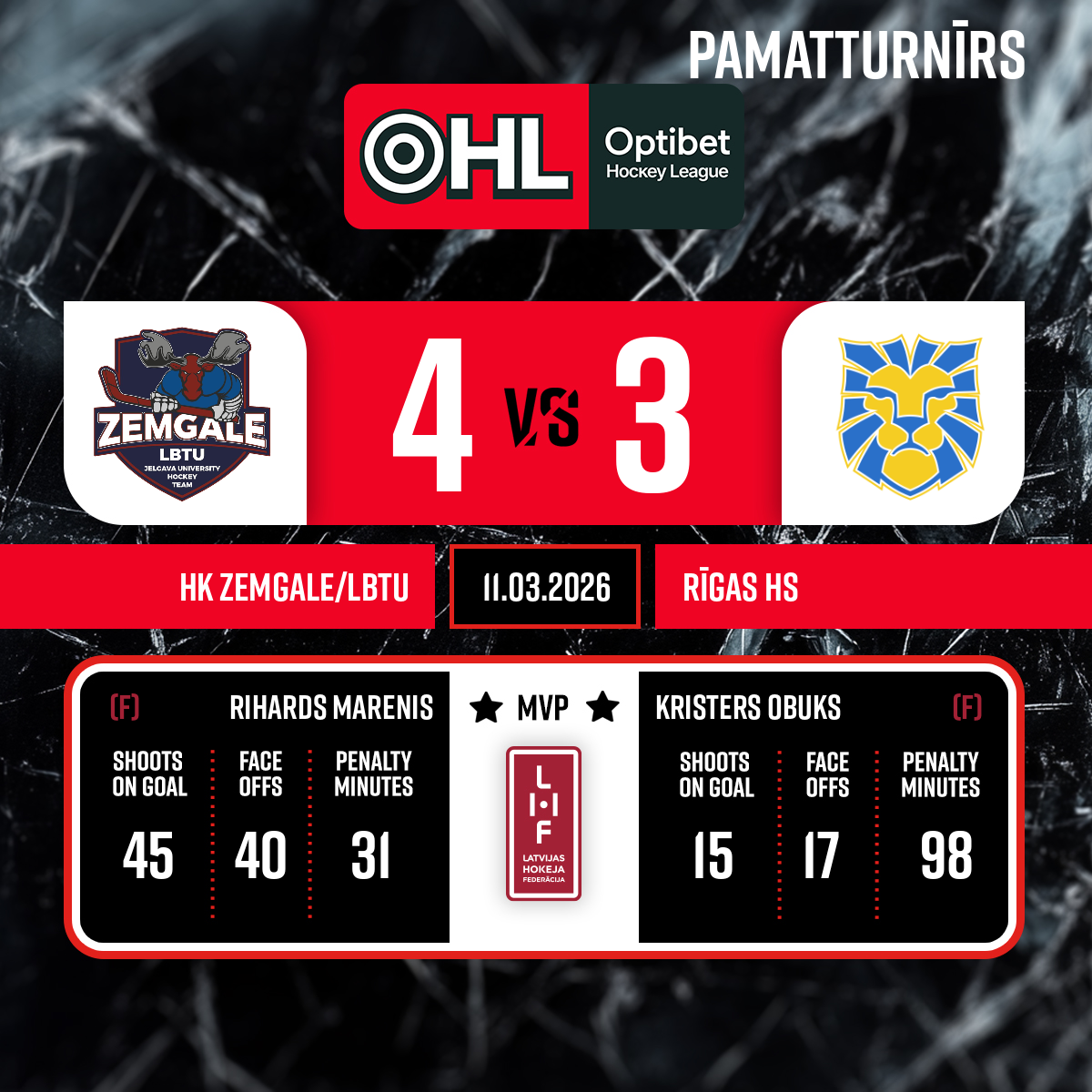 Goal#29 Rihards MARENISAssist: #8 Patriks ZABUSOVS - 45:34P3