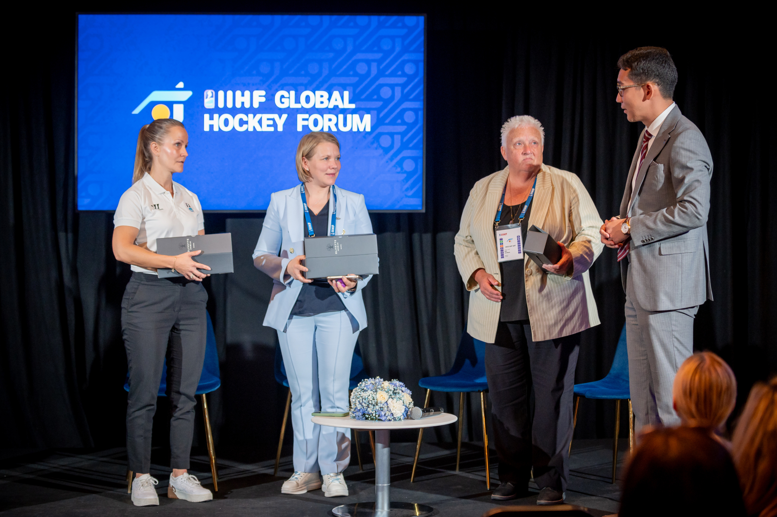 Foruma laikā speciālisti, treneri, tirgus eksperti un hokeja leģendas, tostarp Henriks Lundkvists un Kesija Kembela-Paskāla, dalījās pieredzē un idejās, kā piesaistīt jaunus spēlētājus un skatītājus, veicināt sieviešu hokeja attīstību un nodrošināt sporta ilgtspējīgu izaugsmi.