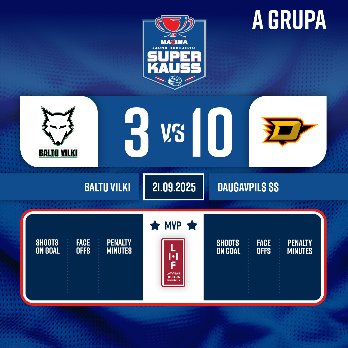 - 11:131.PVārti vairākumā#8 Dominiks SUTĀNSPiespēles: #27 Danila JAKIMOVIČS, #18 Deivid PILAT