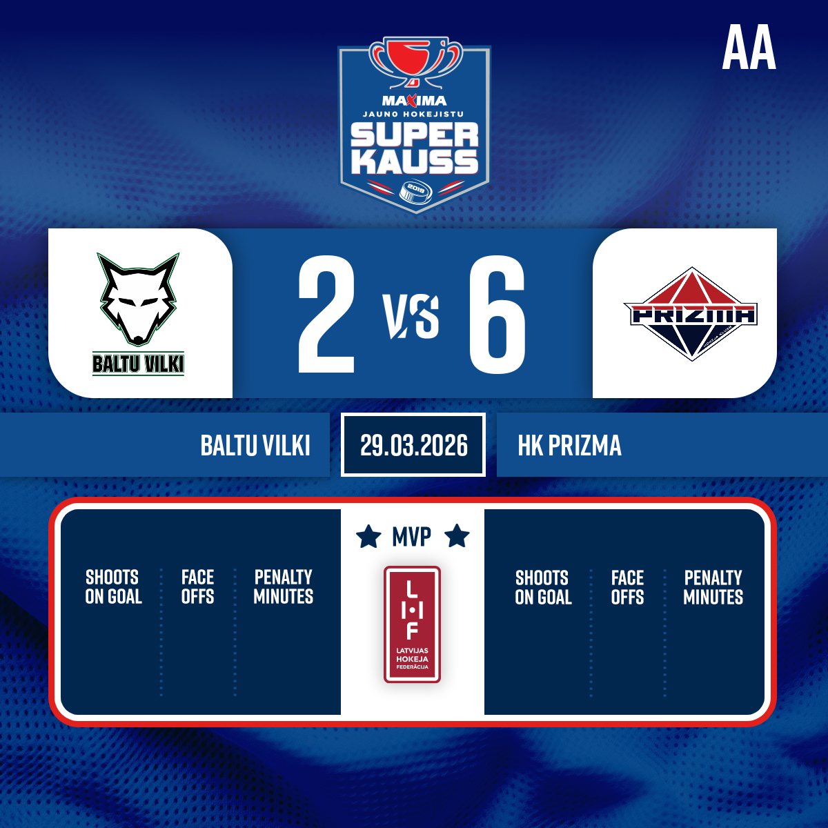 Vārti#16 Patriks Miks PŪPOLSPiespēles: #9 Toms GARKLĀVS, #25 Gilberts VOZNESENSKIS