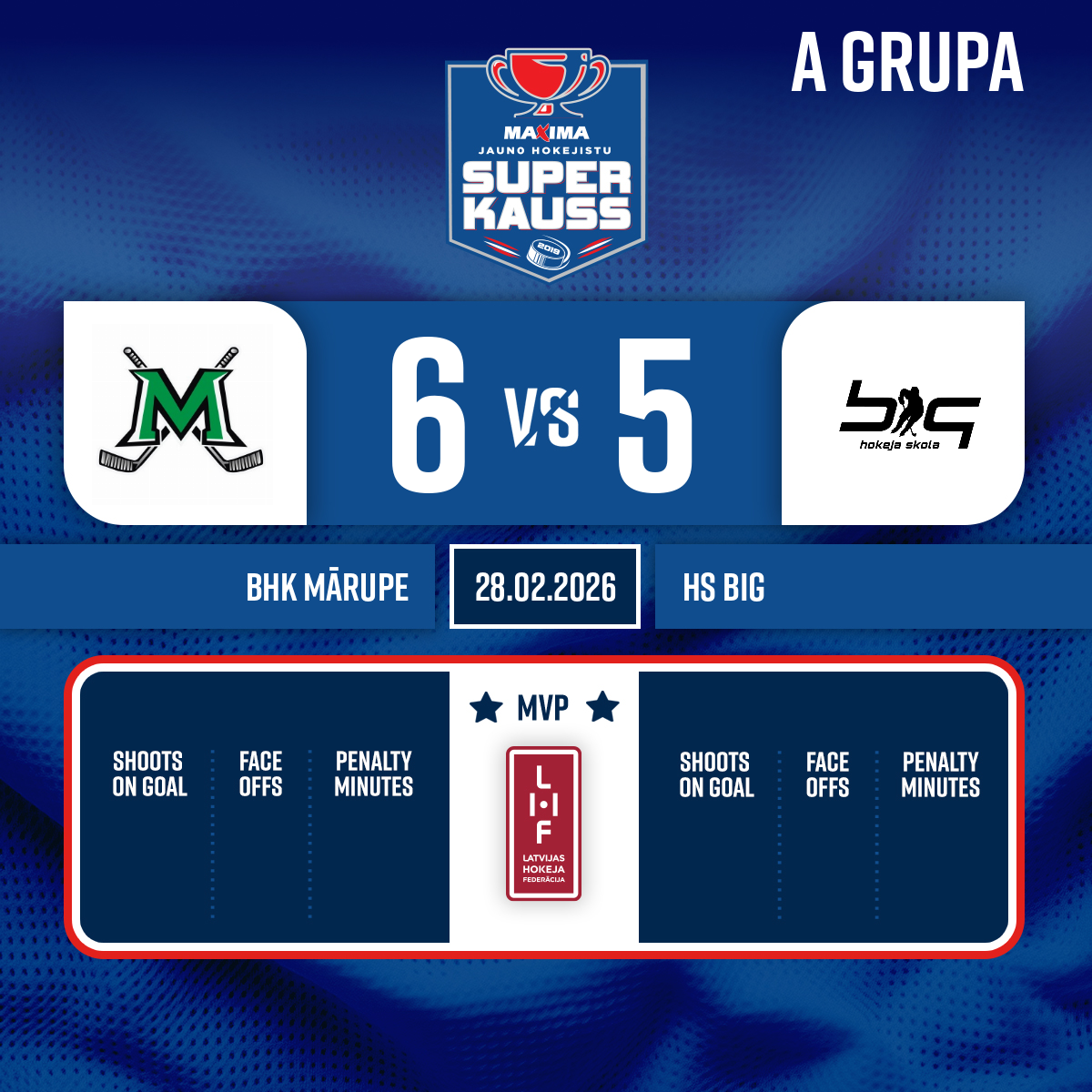 Vārti#27 Martins BĒRZUPSPiespēles: #19 Mārcis SNIGIREVS, #20 Markuss FREIMANIS
