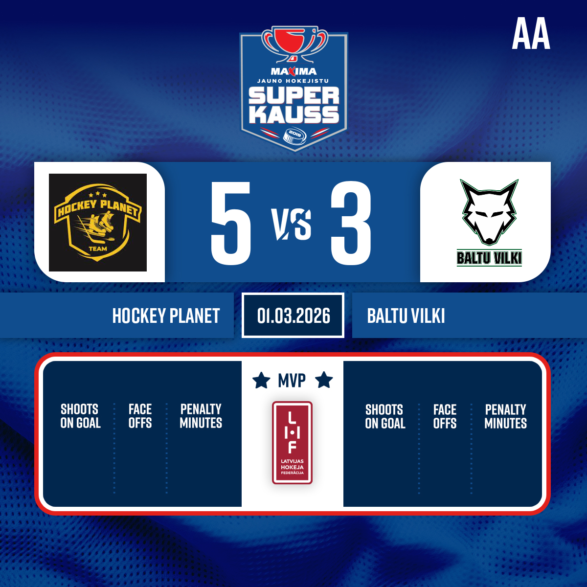 Vārti#8 Artūrs Jānis ROZENTĀLSPiespēle: #19 Maksims KLUSS - 09:231.P