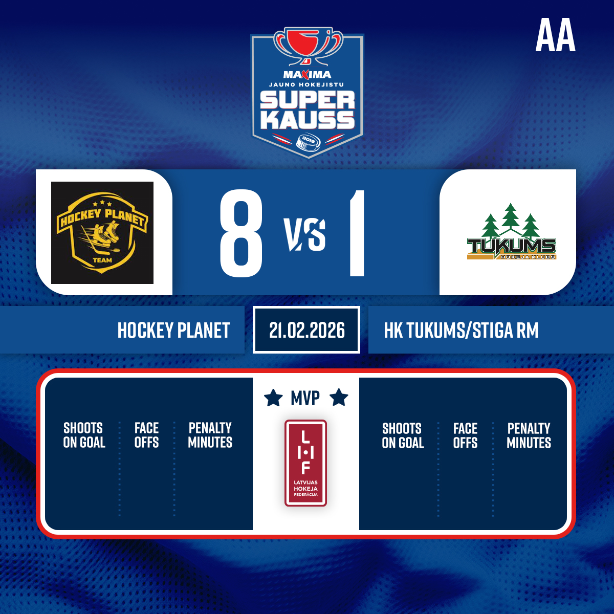 Vārti#30 Brūss OZOLSPiespēles: #23 Emīls STANKEVIČS, #2 Rojs PRINCIS
