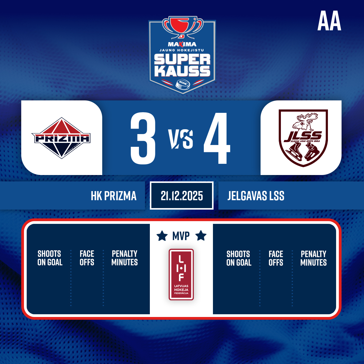 Noraidījums - 2 minūtesGrūšana uz apmali, #15 Kārlis MAURIŅŠ - 30:00 3. perioda sākums