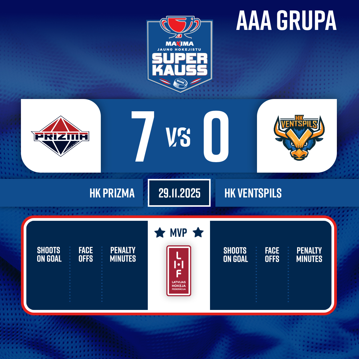 #19 Gustavs Augusts MUNCISPiespēle: #27 Adrians JEFREMENKO2:017:05- 1. Periods