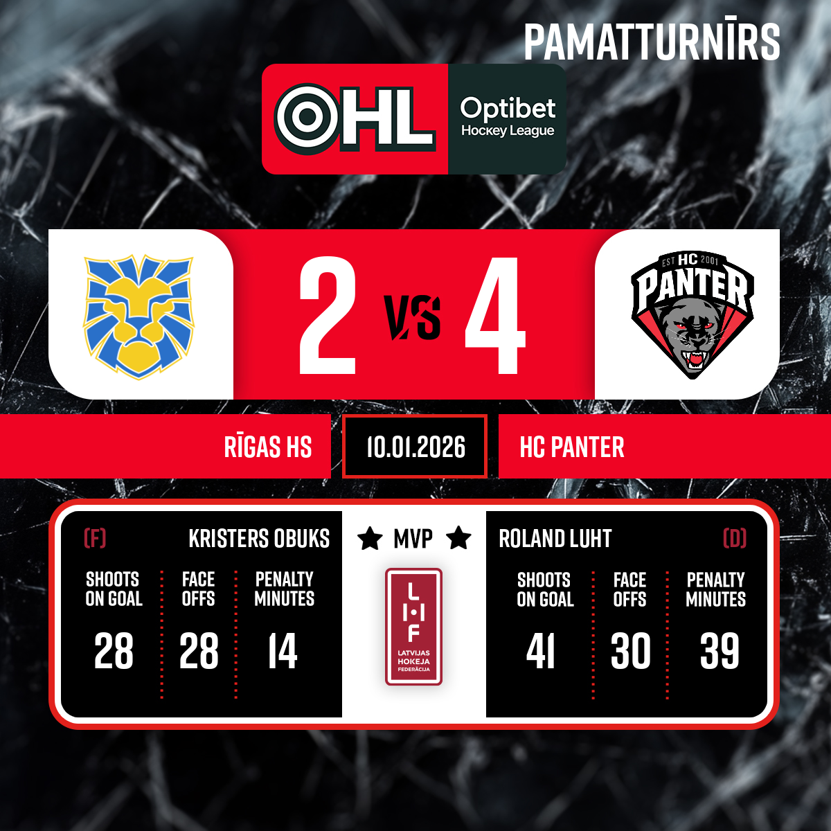 Vārti vairākumā#10 Roberts Jānis POLISPiespēles: #14 Kārlis TAMENIEKS, #15 Fēlikss Niks PAURS - 23:062.P
