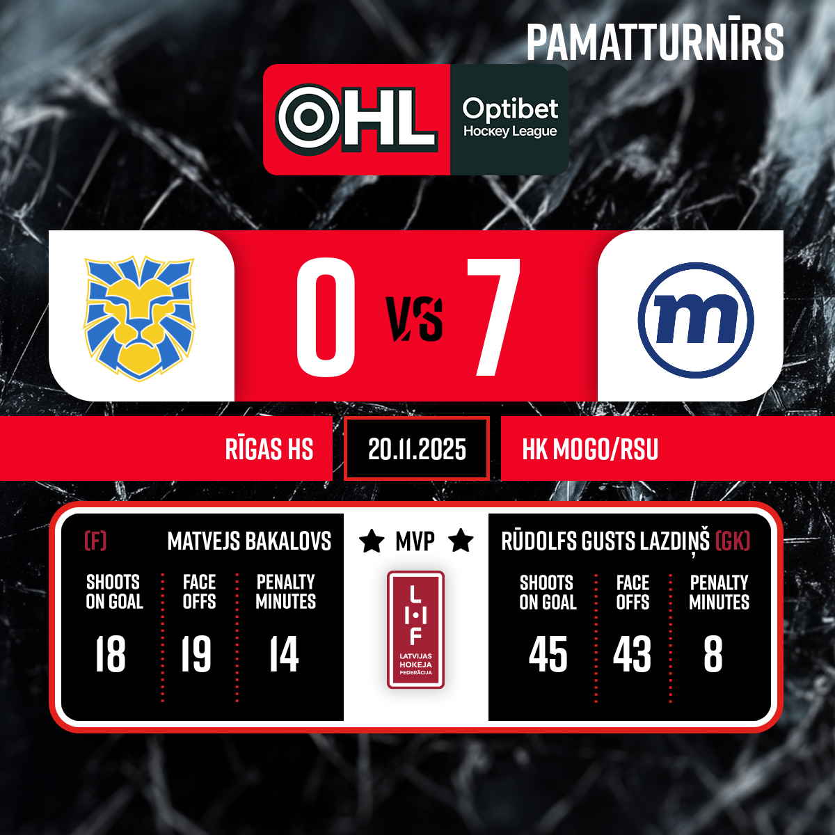 #44 Gatis SPRUKTSPiespēles: #7 Deivids SARKANIS#86 Kristers ANSONS0:5VV1, 46:42