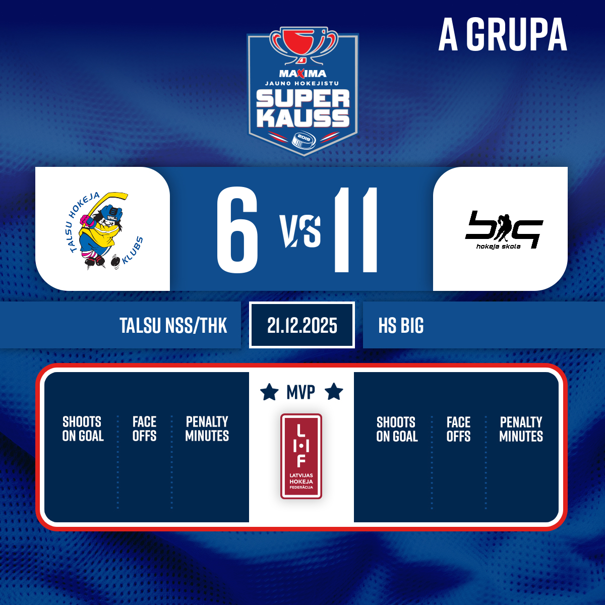 Vārti#15 Krišjānis SKUJAPiespēles: #16 Emīls NIKLĀVS, #22 Martins ZIEDIŅŠ - 00:001.P