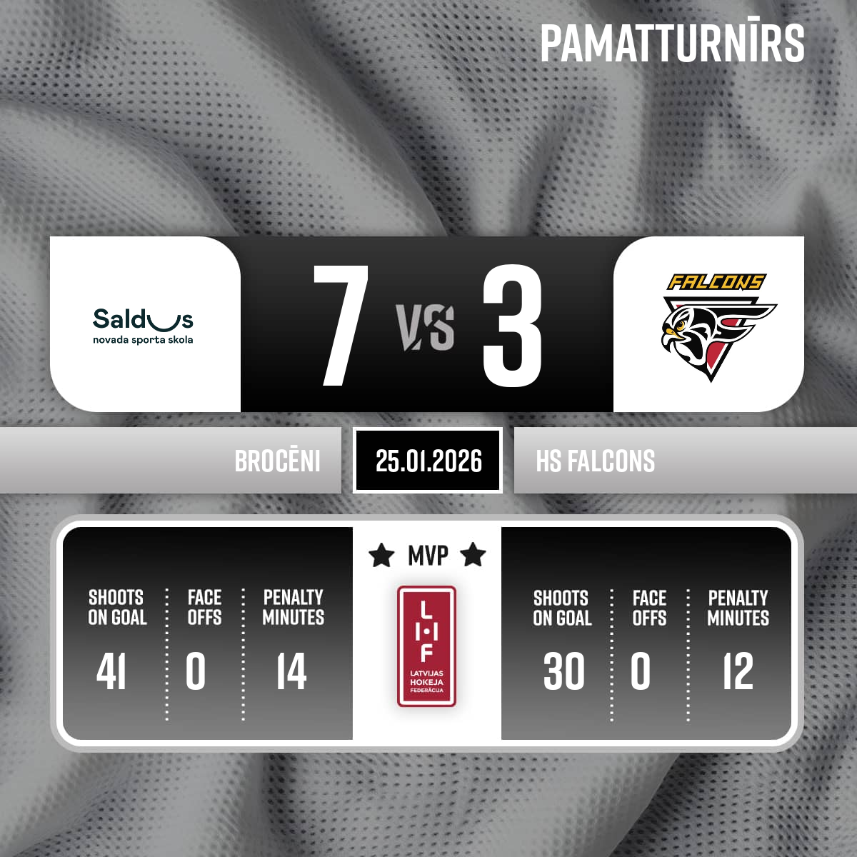 Vārti#43 Mārtiņš ŠULCSPiespēles: #22 Roberts ANDERSONS, #11 Edgars CGOJEVS