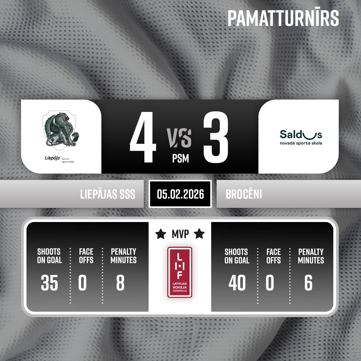 Vārti#47 Rūdolfs LAIVENIEKSPiespēles: #4 Kristians BĒRZIŅŠ, #45 Kristers BUTĀNS