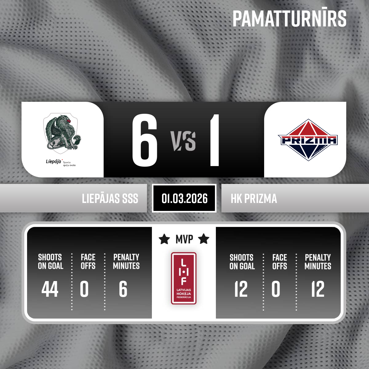 Vārti#47 Rūdolfs LAIVENIEKSPiespēles: #38 Iļja KOZLOVS, #29 Bruno ZAREMBA