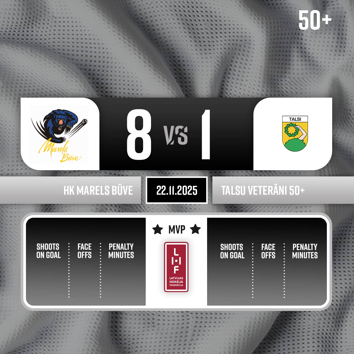 #38 Vitālijs LEONOVSPiespēles: #19 Rolands MEINARTS#10 Armands BERGMANIS8:129:29