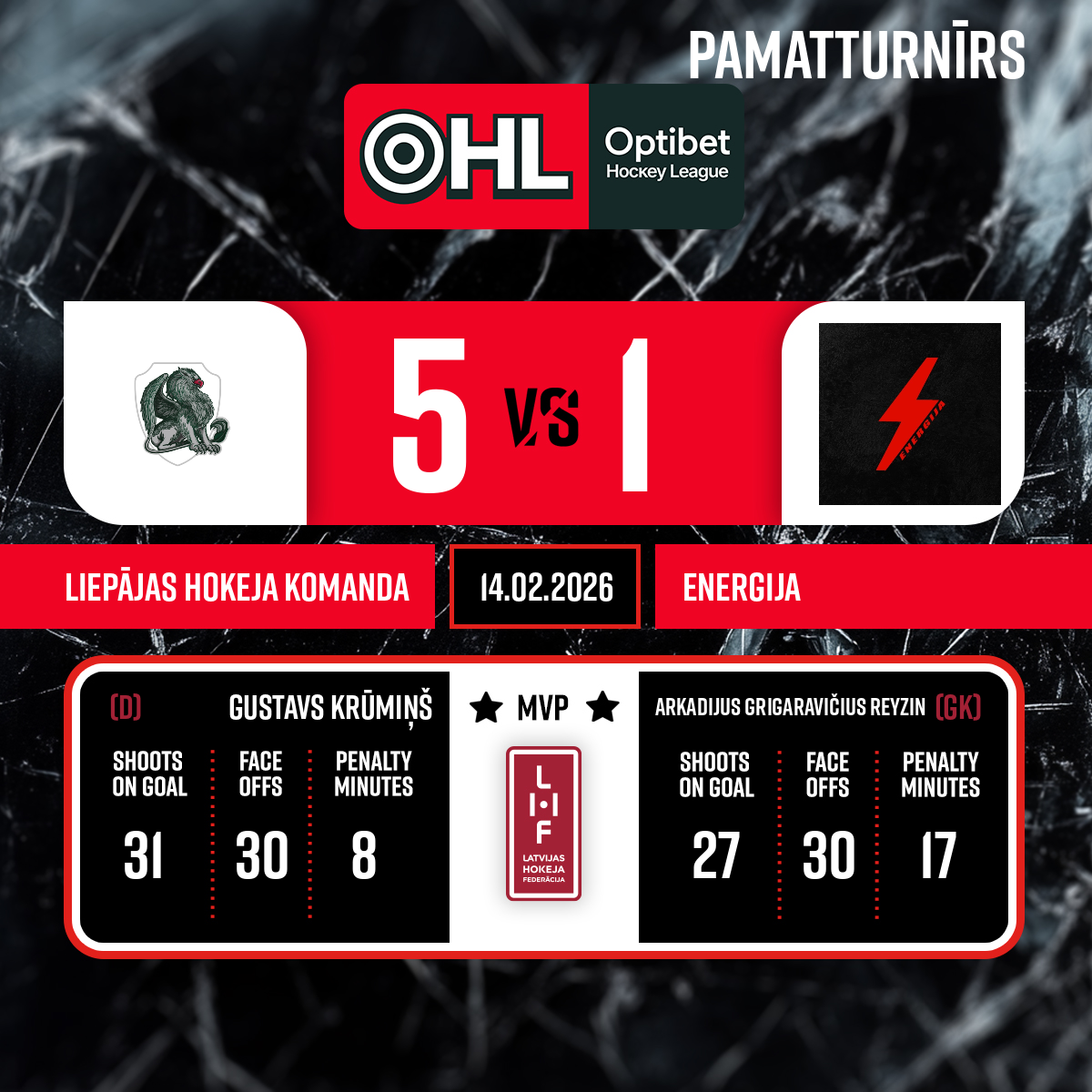 Piespēles: #8 Gustavs KRŪMIŅŠ, #19 Kristers KUZŅECOVS